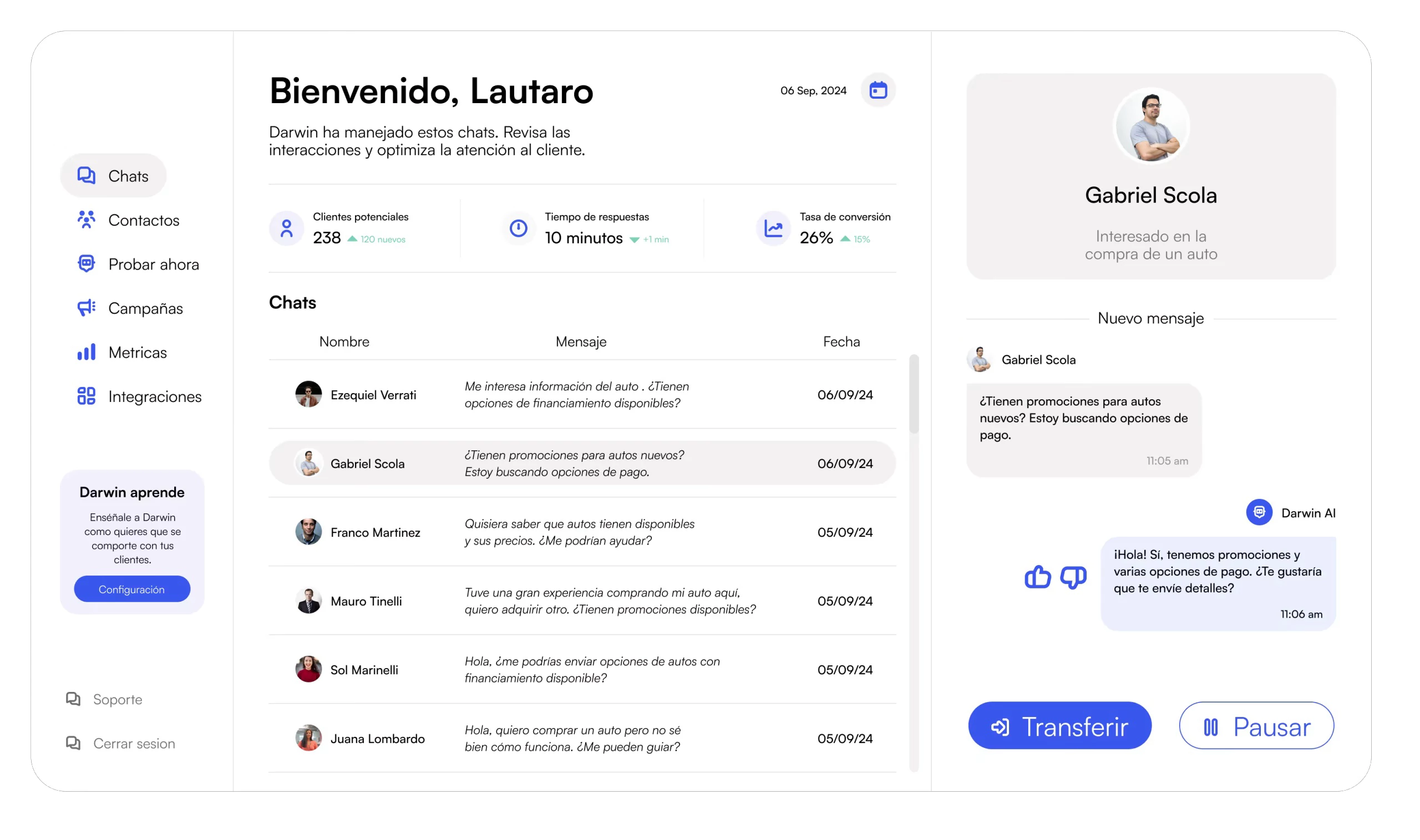 Se integran a tu ecosistema digital y trabajan dentro de tu proceso comercial para atender, calificar leads y dar seguimiento en tiempo real.