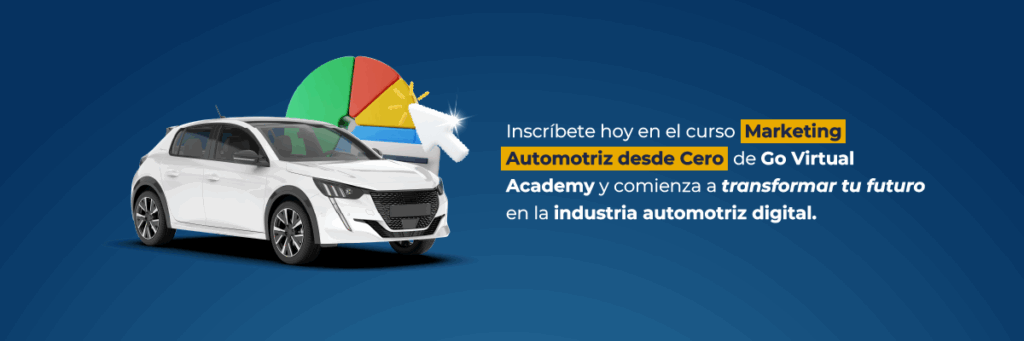 Si quieres dar tus primeros pasos en este entorno y aprender cómo funciona el marketing automotriz digital desde la base, el curso Marketing Automotriz desde Cero de Go Virtual Academy es para ti. Está diseñado para que cualquier persona —sin importar su experiencia previa— pueda comprender los fundamentos, aplicar herramientas prácticas y desarrollar una visión clara de cómo funciona la industria digital.
